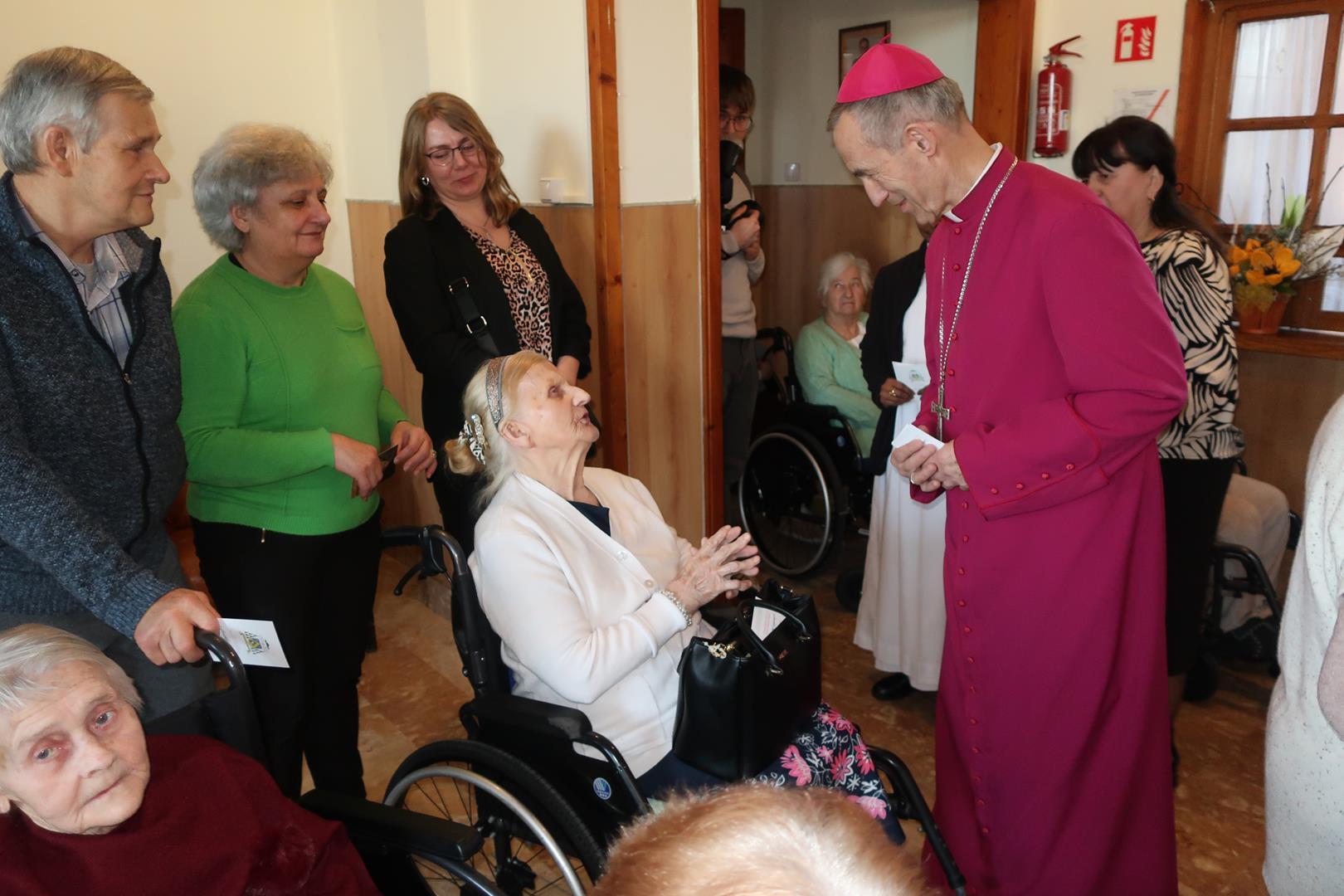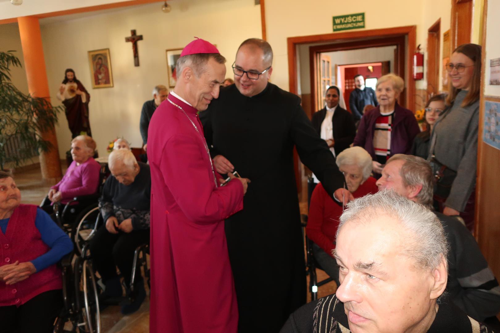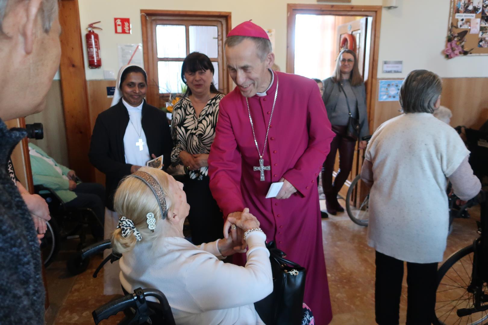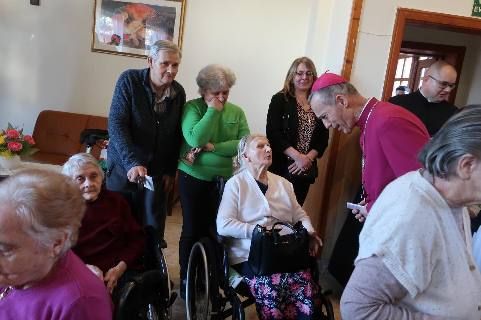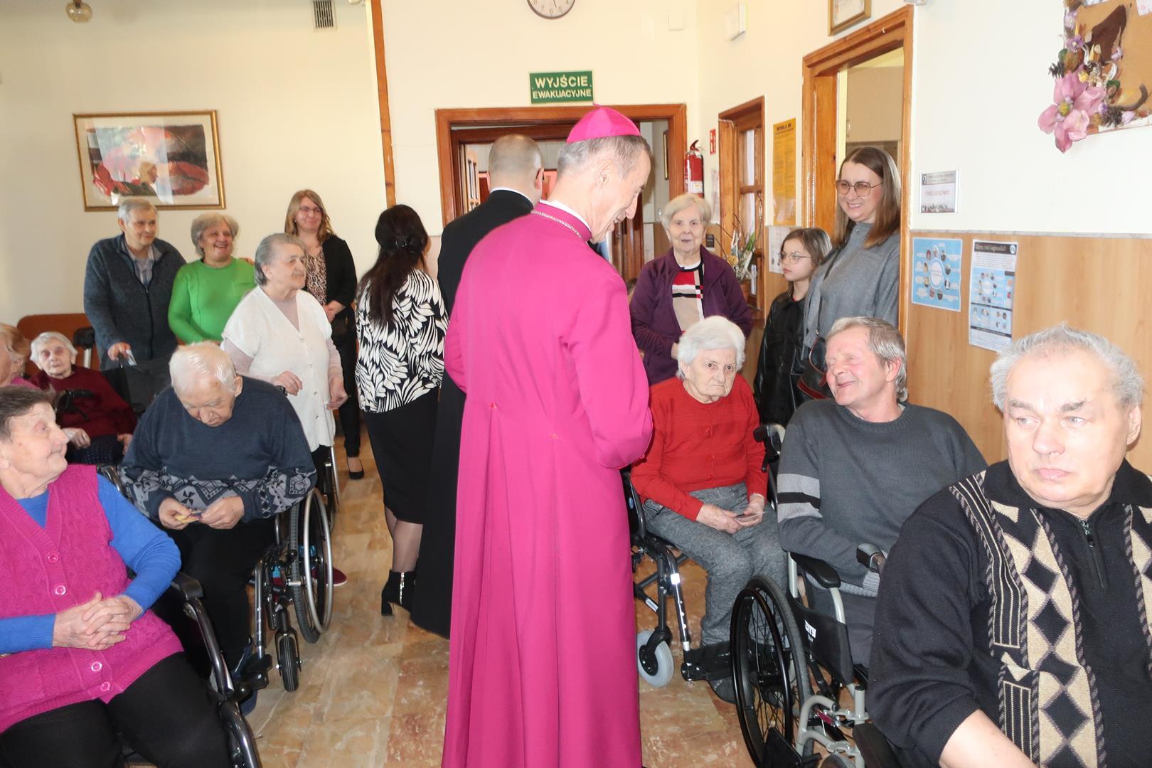 W dniu 28 lutego mieszkańcy Domu Radosnej Starości mieli zaszczyt gościć ks. biskupa Stanisława Salaterskiego. Wizyta była związana z wizytacją kanoniczną w naszej Parafii p.w. Najświętszej Maryi Panny Królowej Polski w Mędrzechowie. Ksiądz biskup rozpoczął wizytę wspólną modlitwą w kaplicy Domu Radosnej Starości, po czym odwiedził mieszkańców placówki oraz spotkał się z dyrekcją i pracownikami Domu.