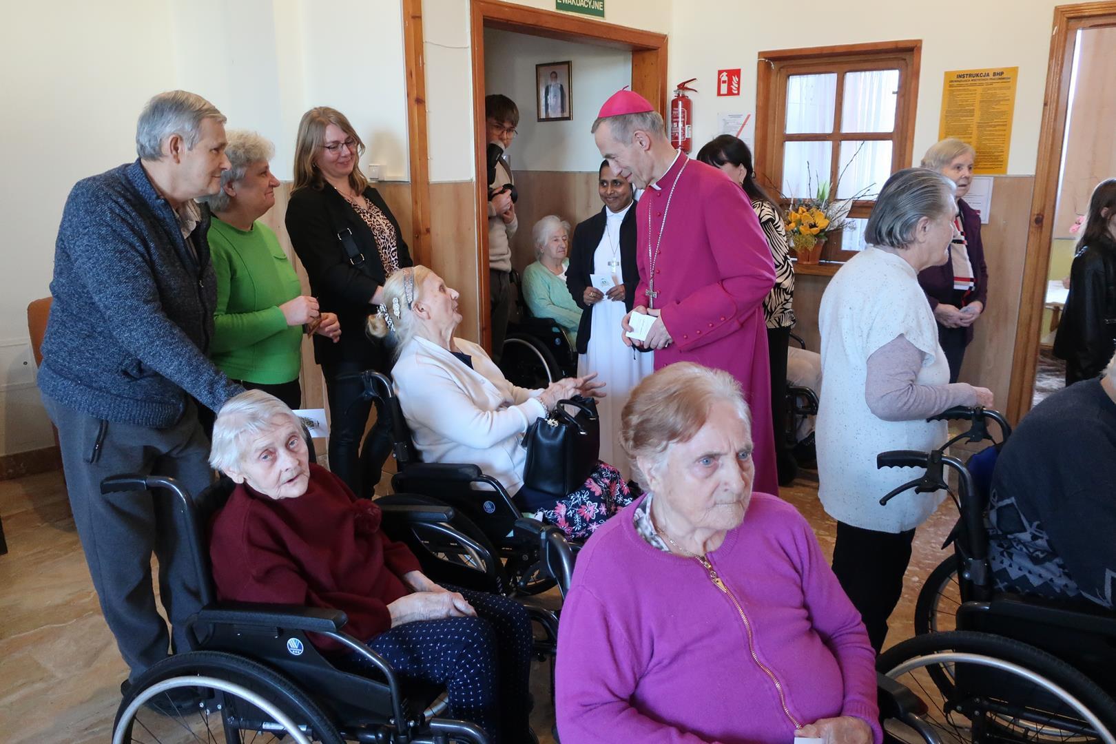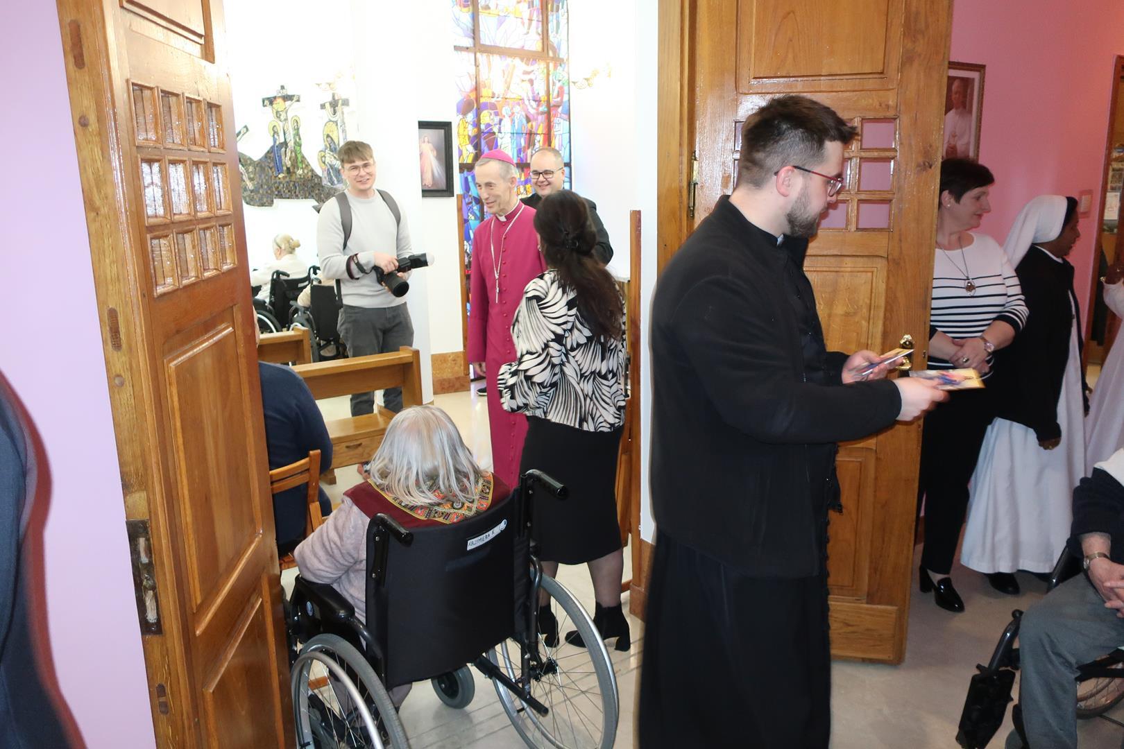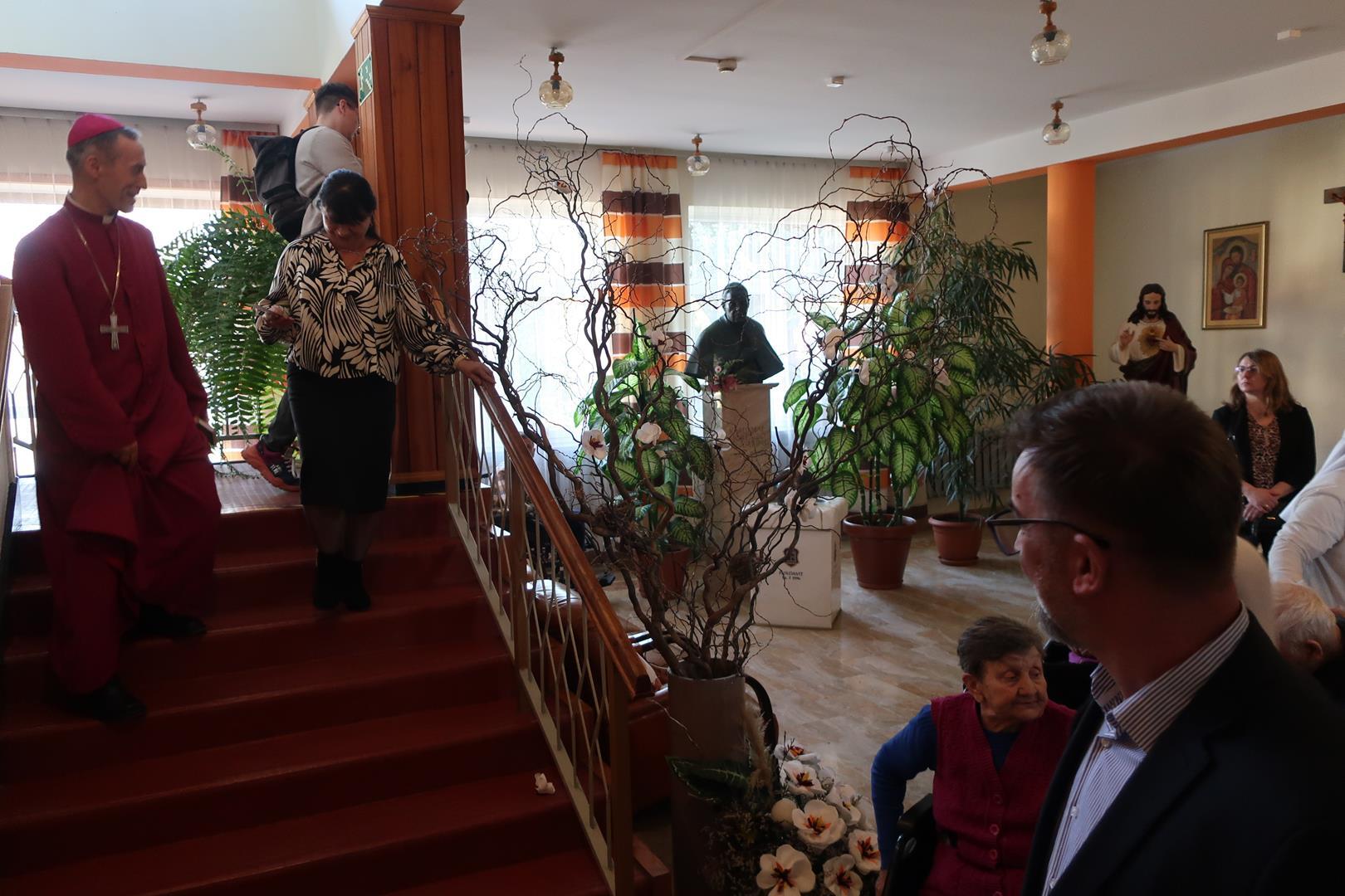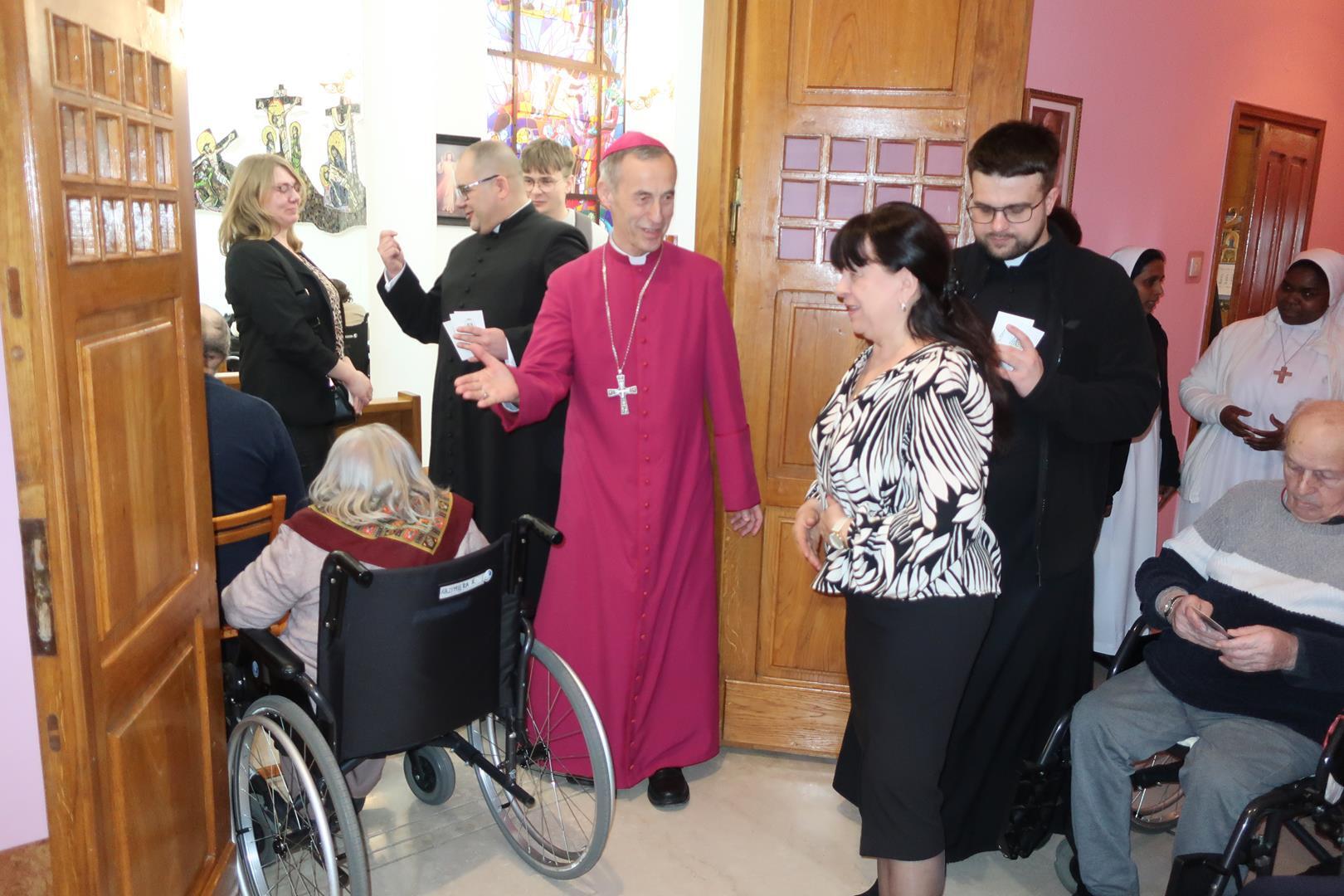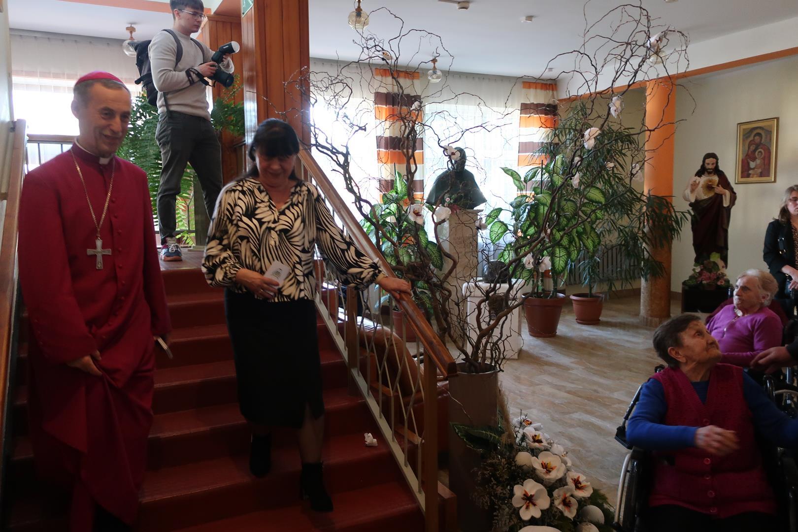 W dniu 28 lutego mieszkańcy Domu Radosnej Starości mieli zaszczyt gościć ks. biskupa Stanisława Salaterskiego. Wizyta była związana z wizytacją kanoniczną w naszej Parafii p.w. Najświętszej Maryi Panny Królowej Polski w Mędrzechowie. Ksiądz biskup rozpoczął wizytę wspólną modlitwą w kaplicy Domu Radosnej Starości, po czym odwiedził mieszkańców placówki oraz spotkał się z dyrekcją i pracownikami Domu.