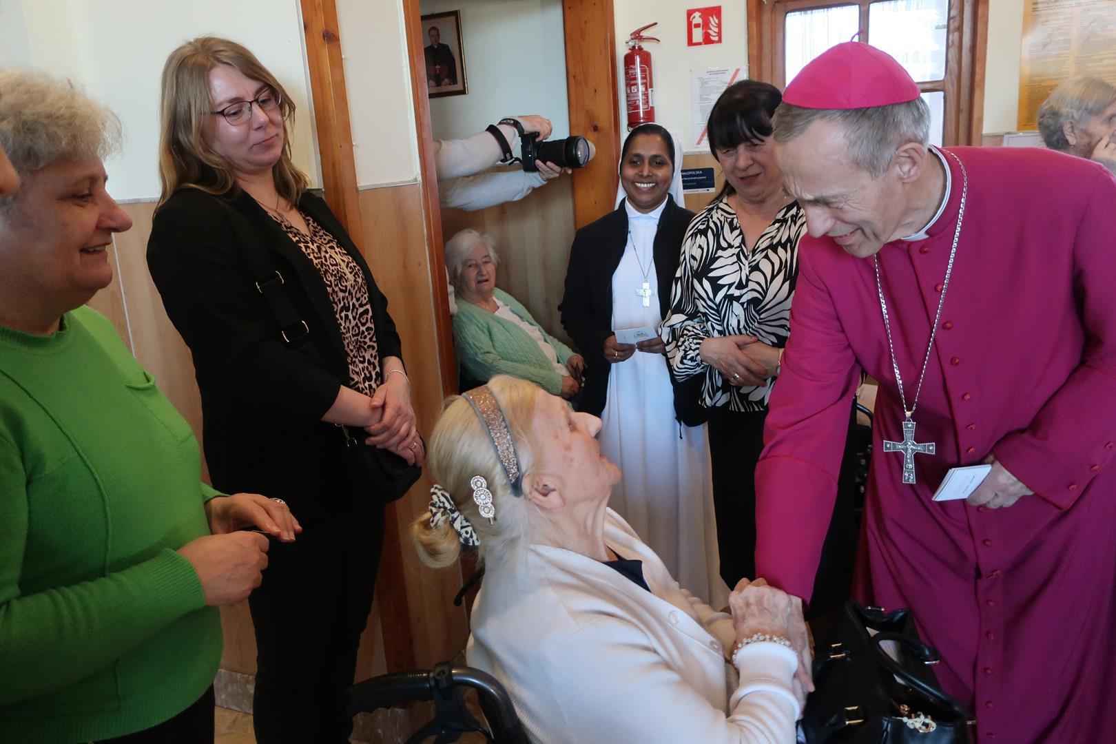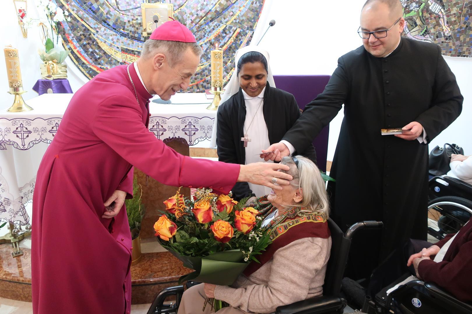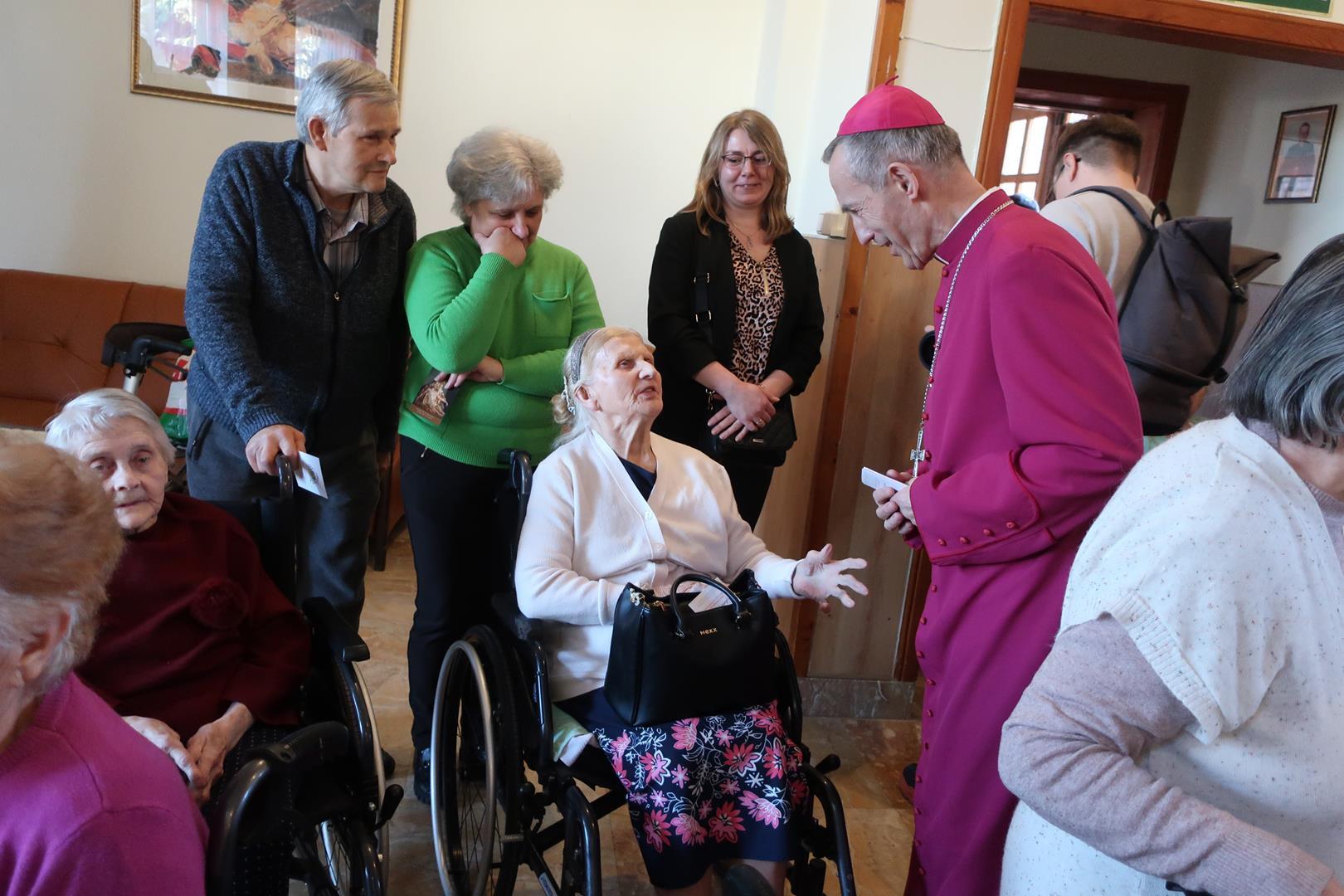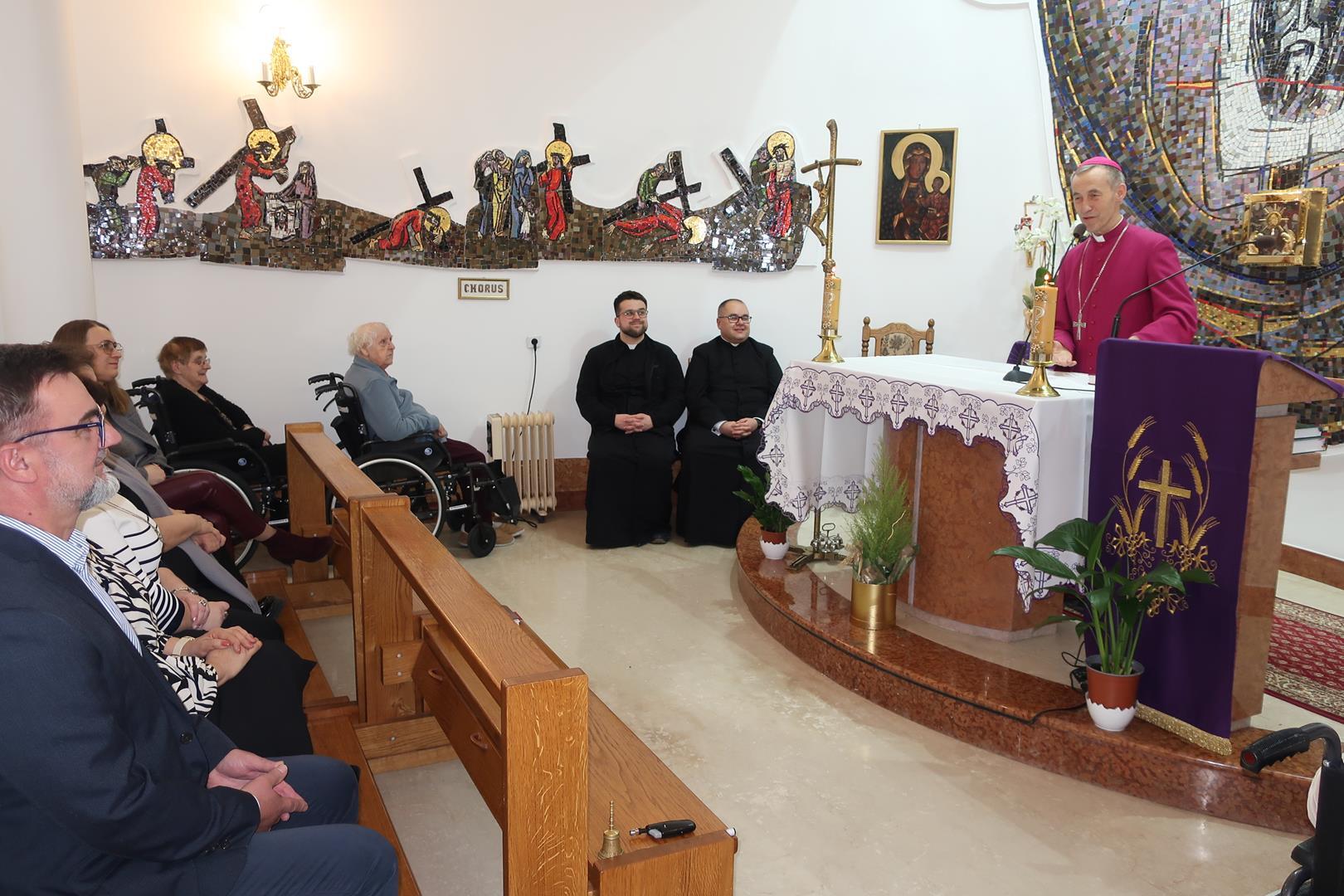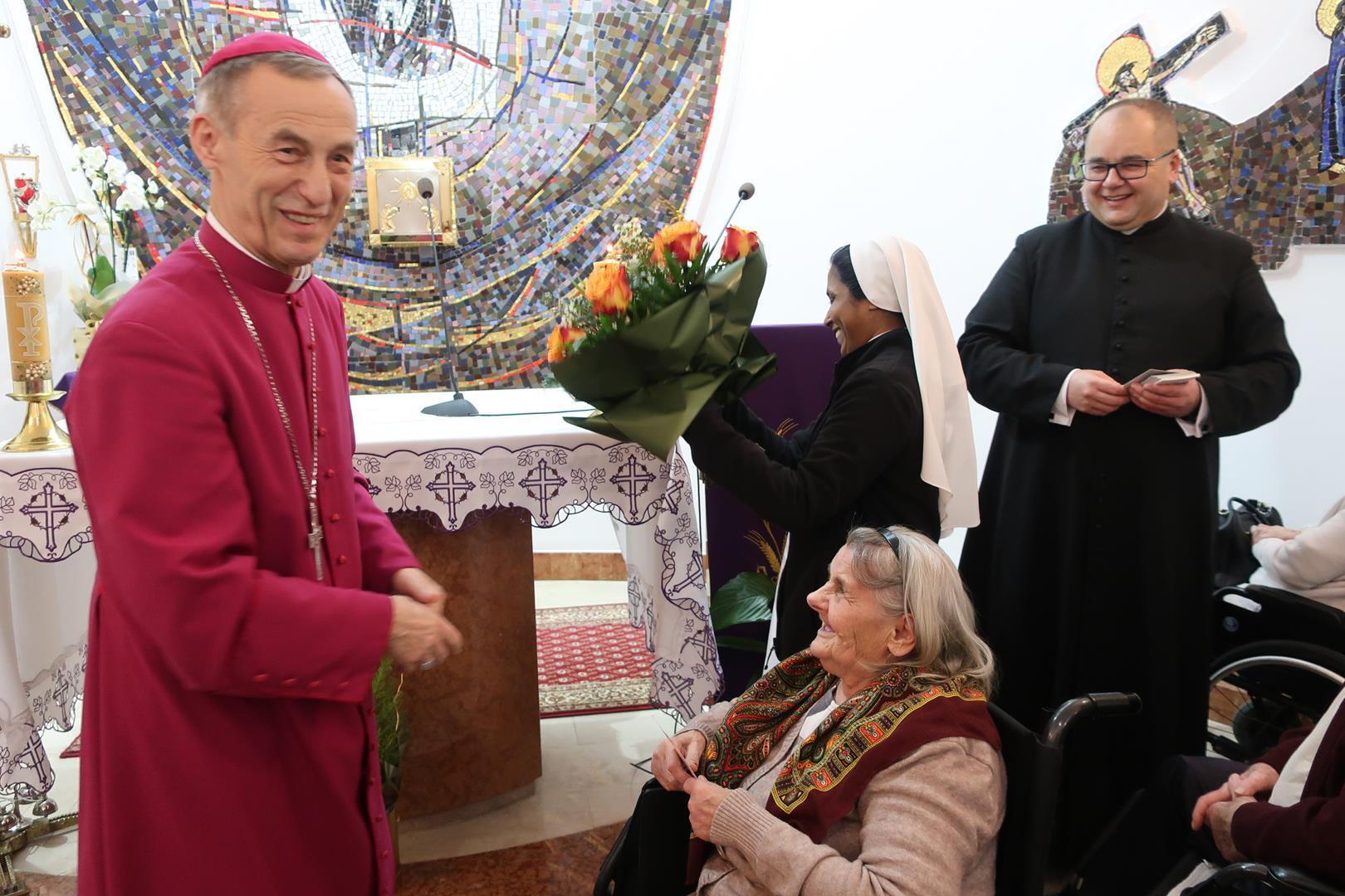 W dniu 28 lutego mieszkańcy Domu Radosnej Starości mieli zaszczyt gościć ks. biskupa Stanisława Salaterskiego. Wizyta była związana z wizytacją kanoniczną w naszej Parafii p.w. Najświętszej Maryi Panny Królowej Polski w Mędrzechowie. Ksiądz biskup rozpoczął wizytę wspólną modlitwą w kaplicy Domu Radosnej Starości, po czym odwiedził mieszkańców placówki oraz spotkał się z dyrekcją i pracownikami Domu.