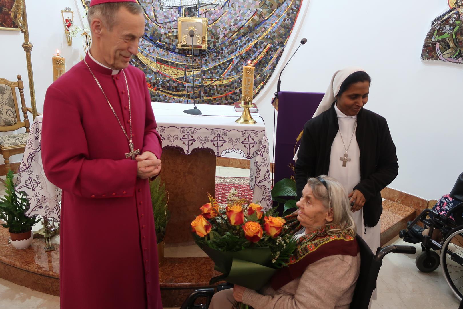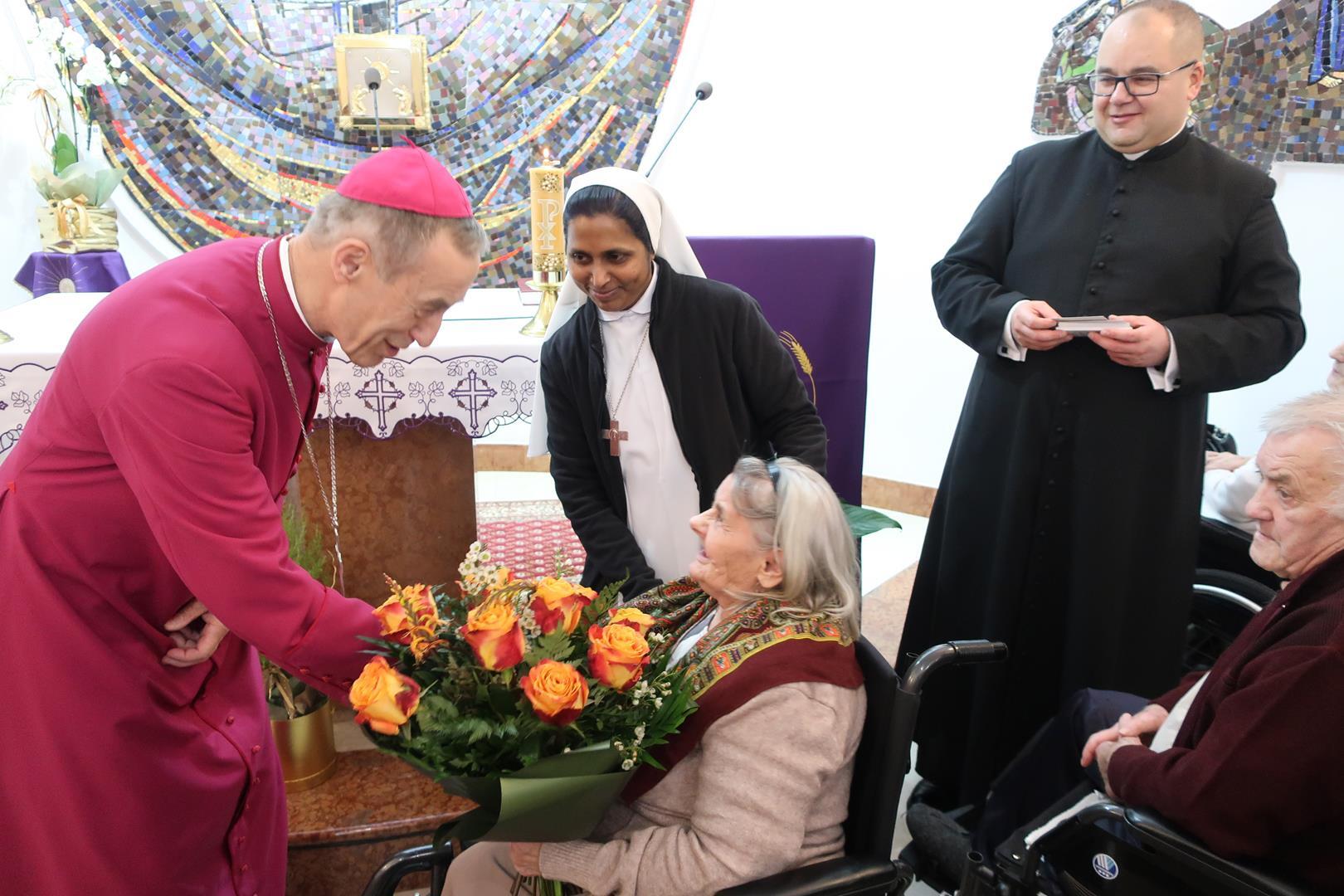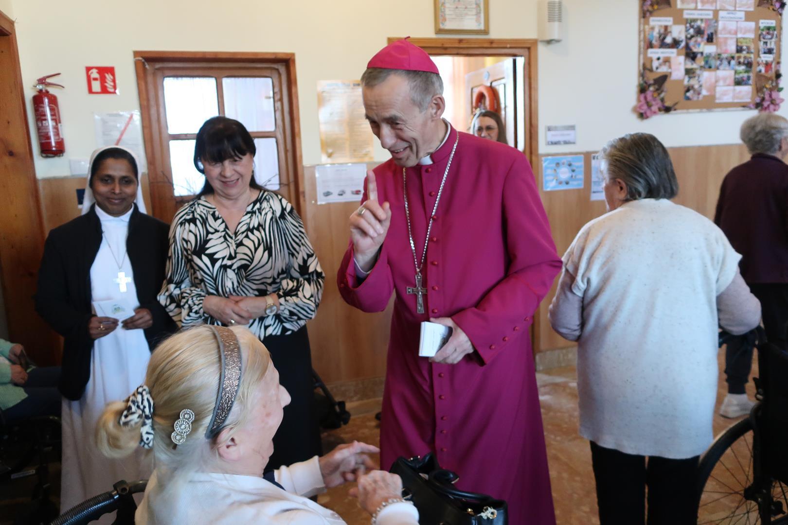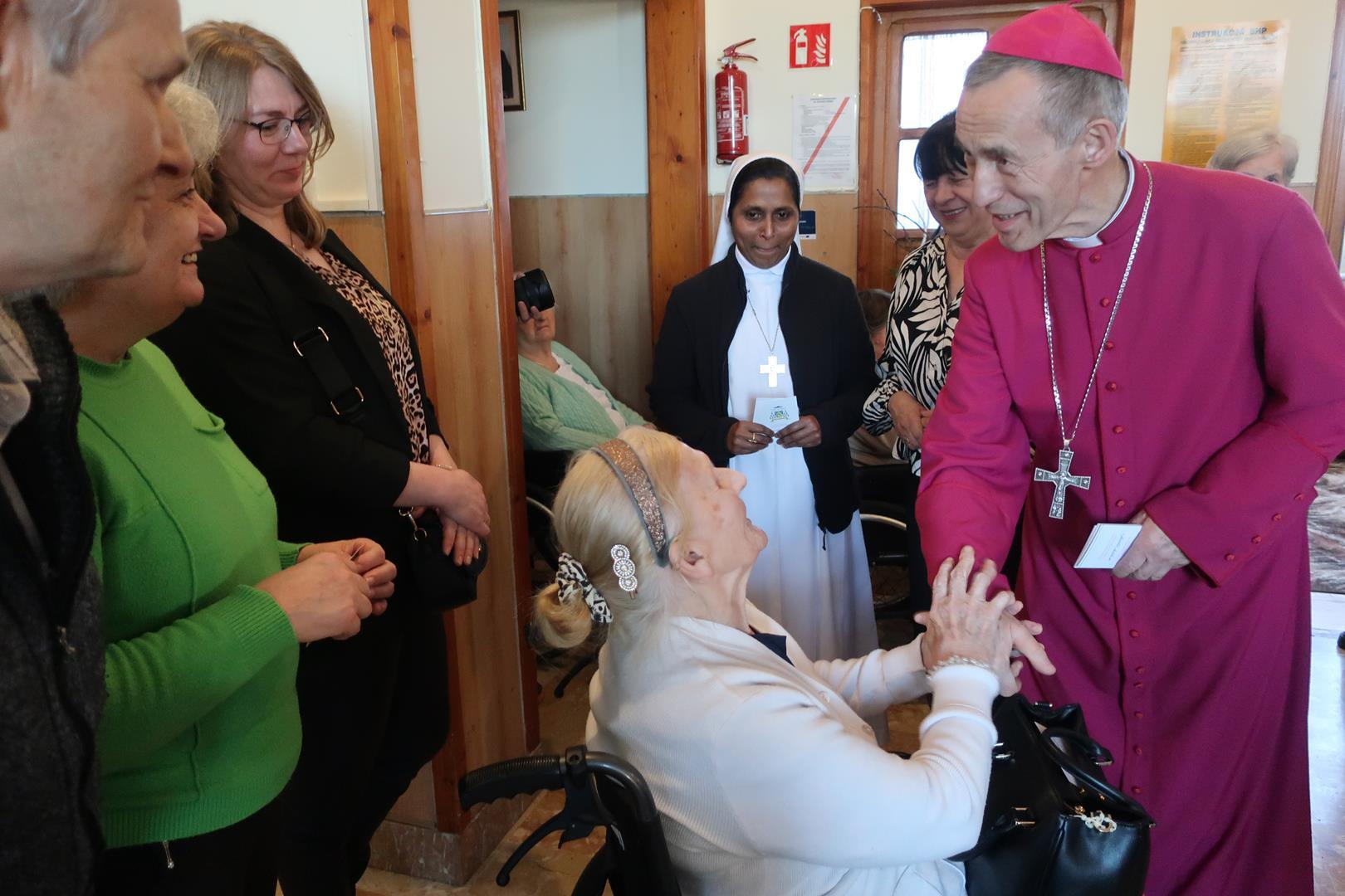 W dniu 28 lutego mieszkańcy Domu Radosnej Starości mieli zaszczyt gościć ks. biskupa Stanisława Salaterskiego. Wizyta była związana z wizytacją kanoniczną w naszej Parafii p.w. Najświętszej Maryi Panny Królowej Polski w Mędrzechowie. Ksiądz biskup rozpoczął wizytę wspólną modlitwą w kaplicy Domu Radosnej Starości, po czym odwiedził mieszkańców placówki oraz spotkał się z dyrekcją i pracownikami Domu.