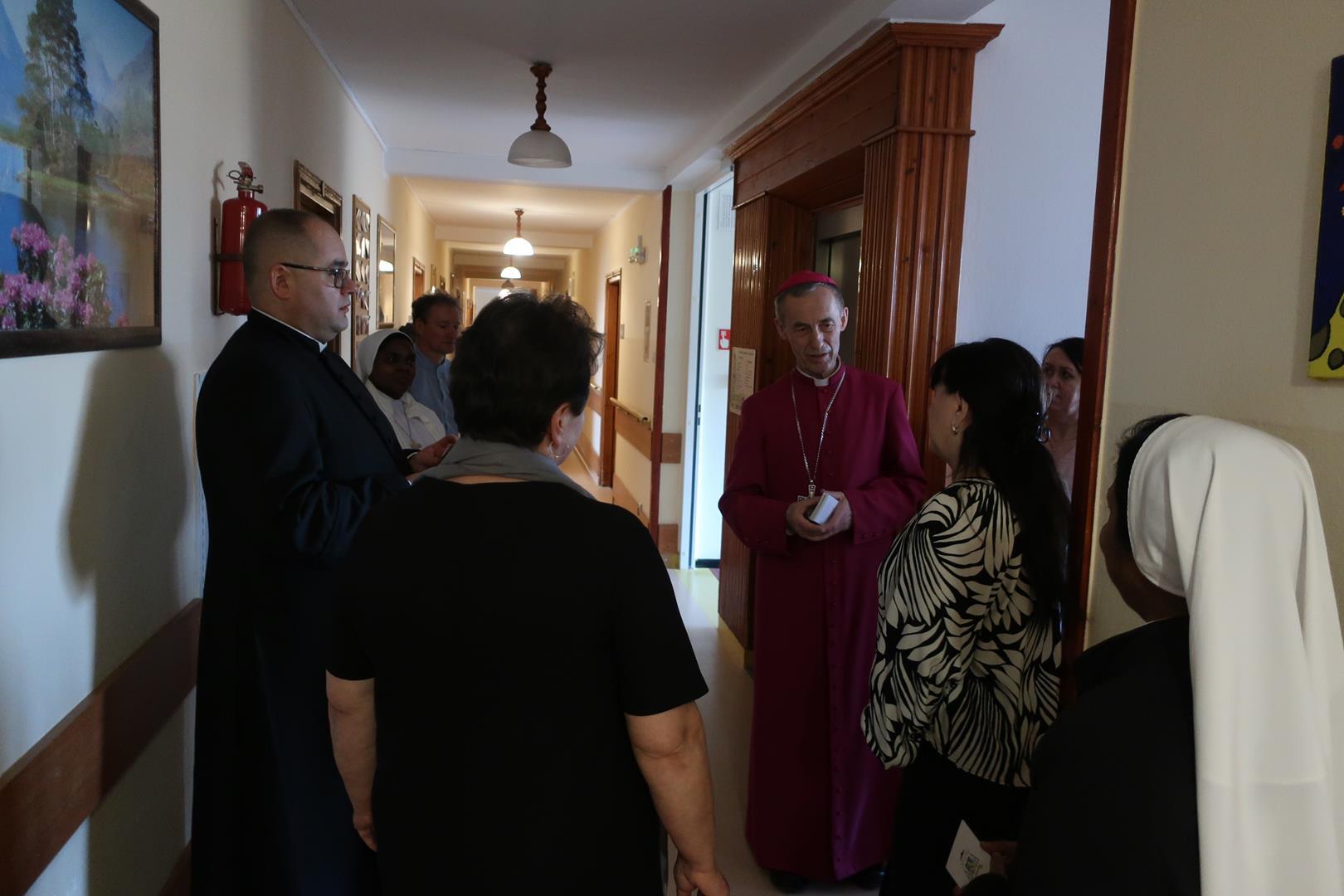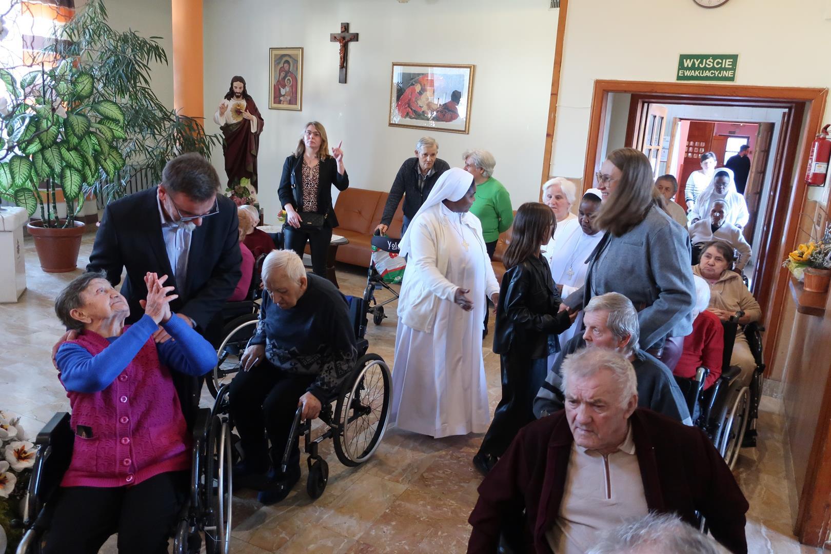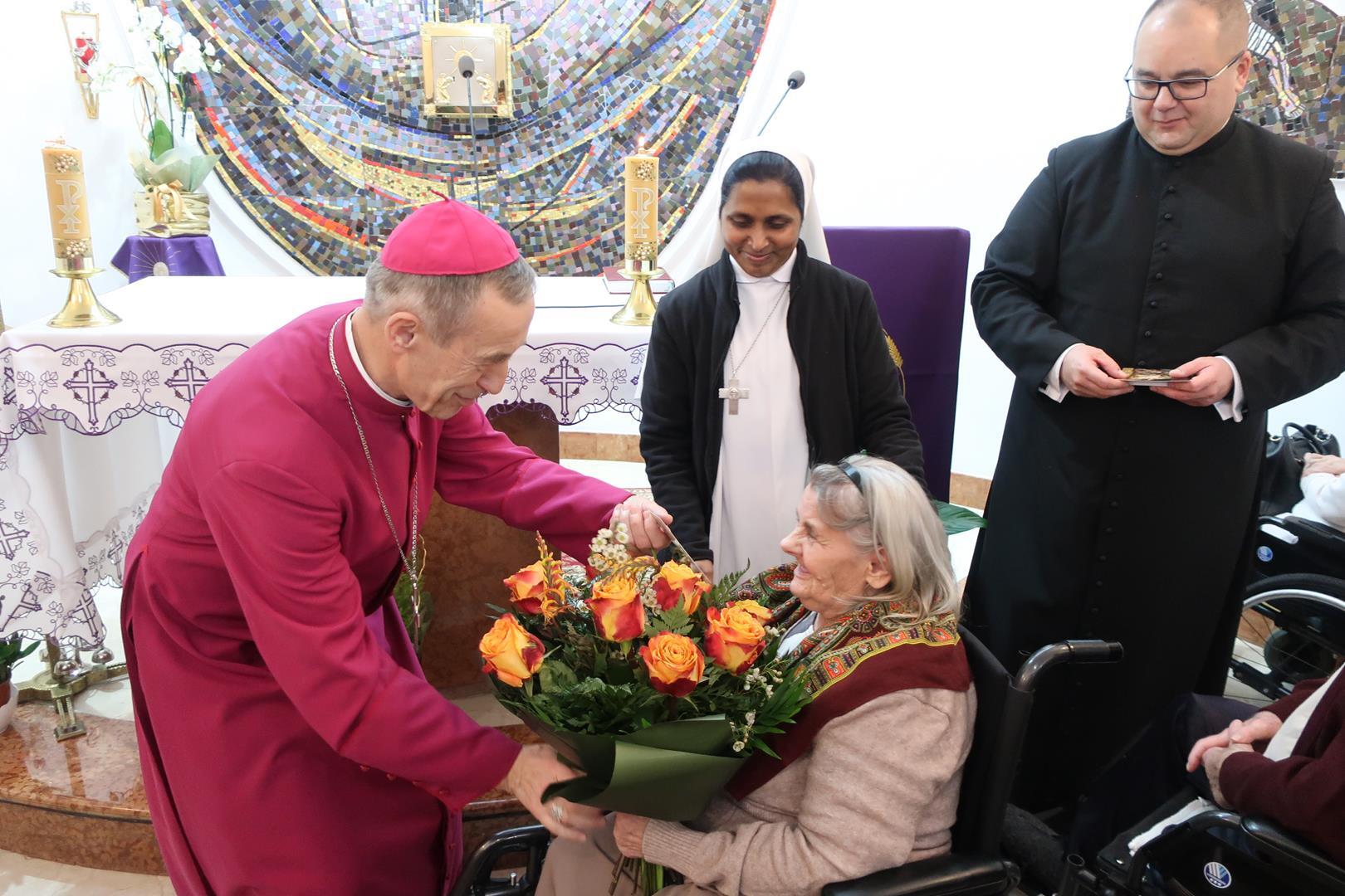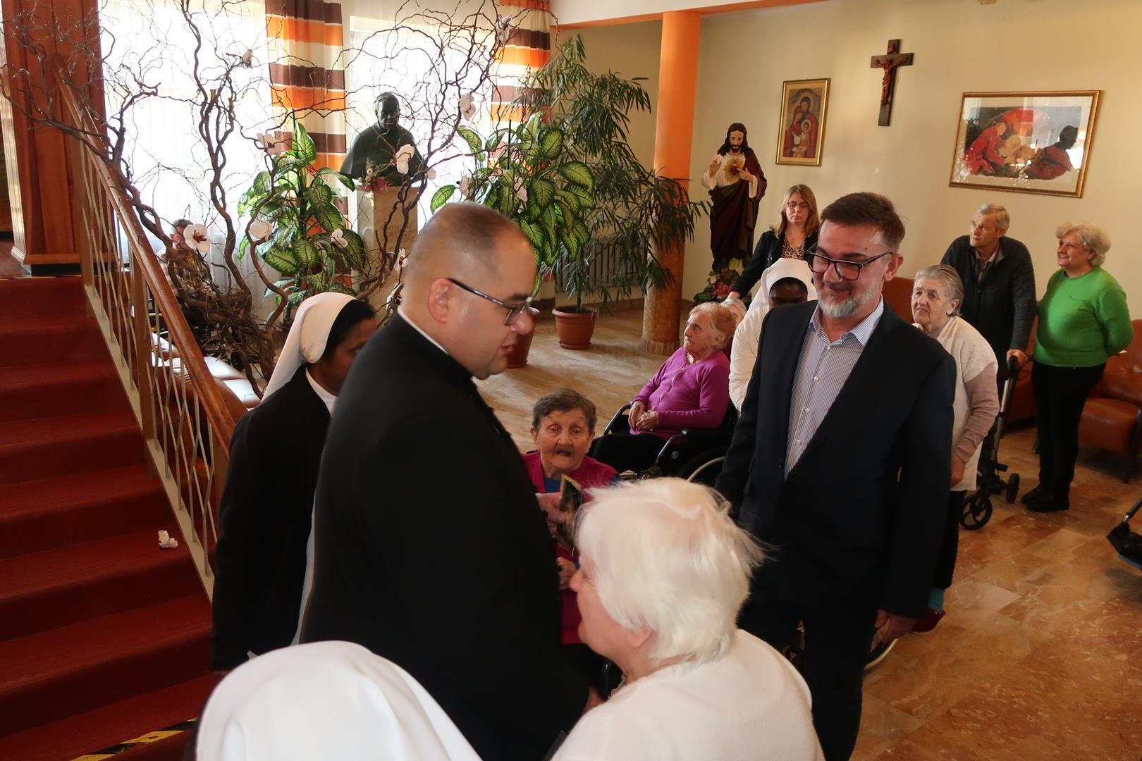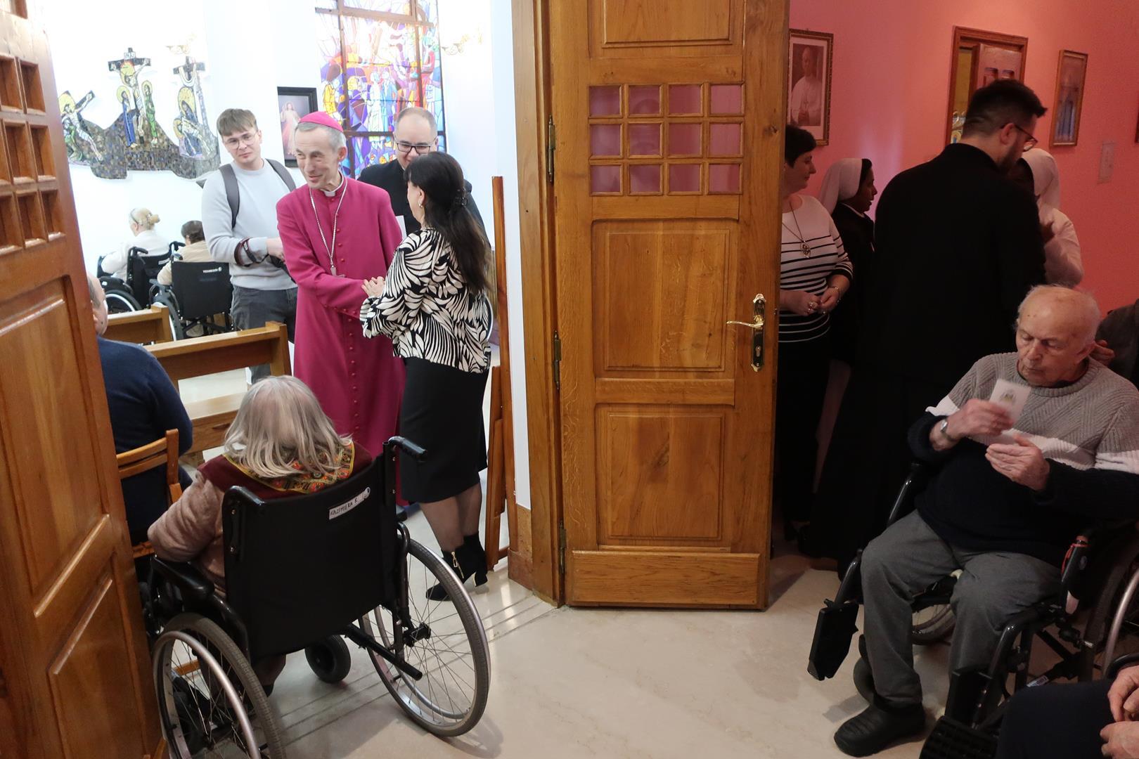 W dniu 28 lutego mieszkańcy Domu Radosnej Starości mieli zaszczyt gościć ks. biskupa Stanisława Salaterskiego. Wizyta była związana z wizytacją kanoniczną w naszej Parafii p.w. Najświętszej Maryi Panny Królowej Polski w Mędrzechowie. Ksiądz biskup rozpoczął wizytę wspólną modlitwą w kaplicy Domu Radosnej Starości, po czym odwiedził mieszkańców placówki oraz spotkał się z dyrekcją i pracownikami Domu.