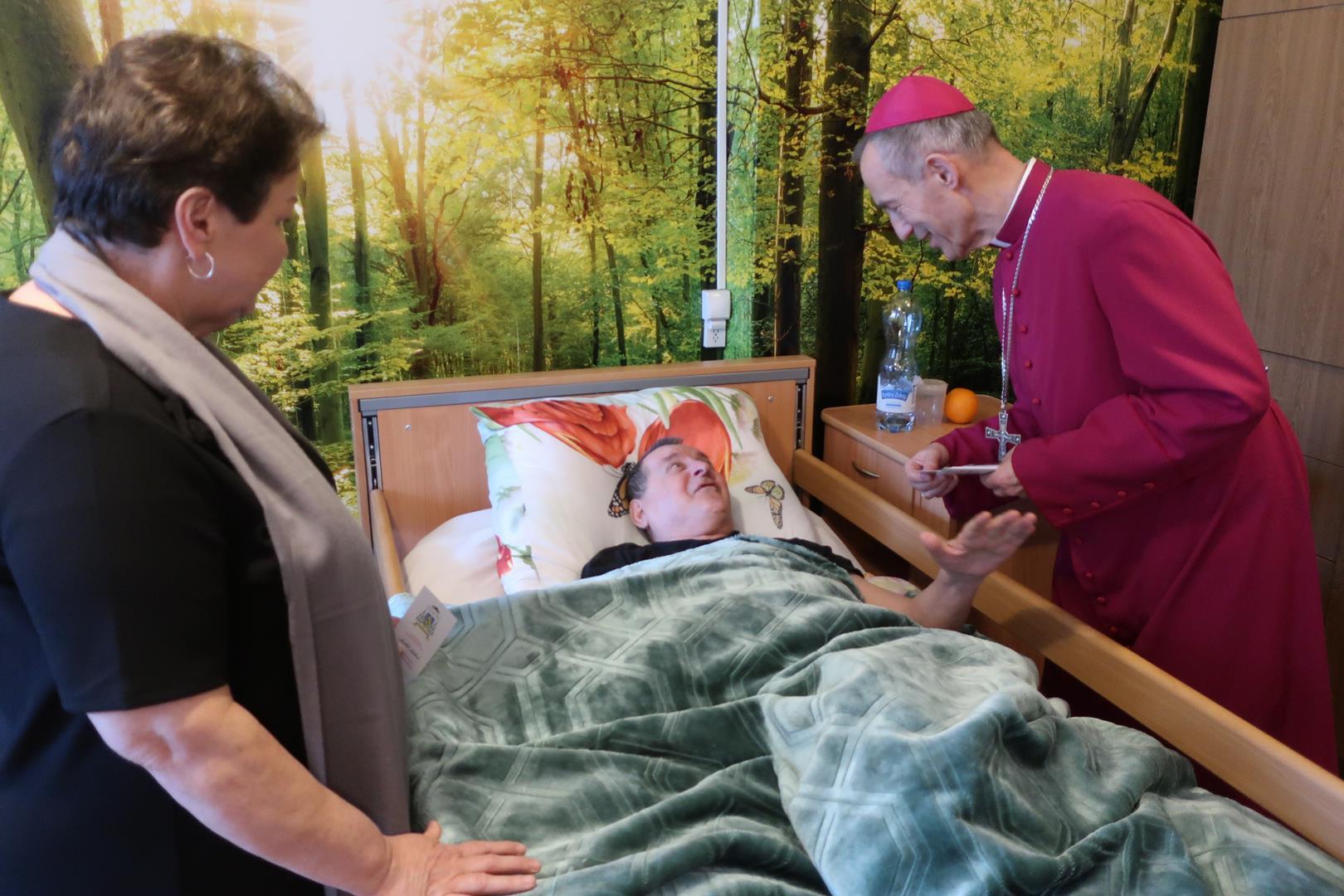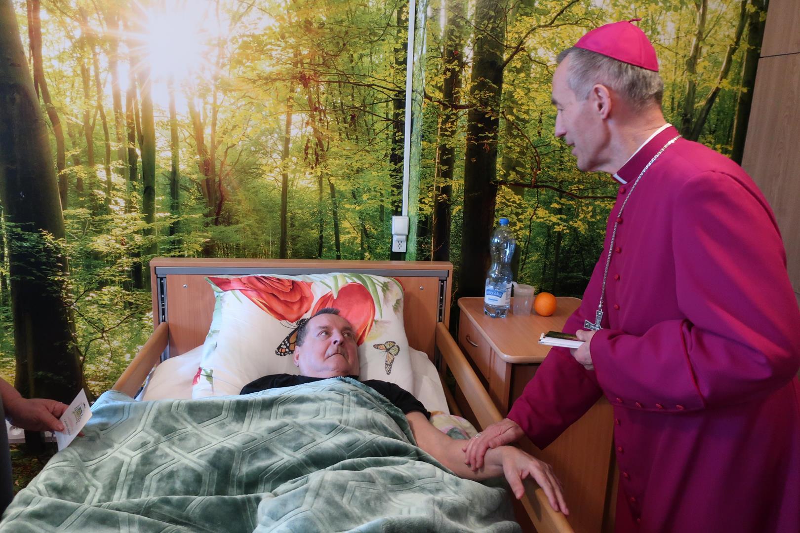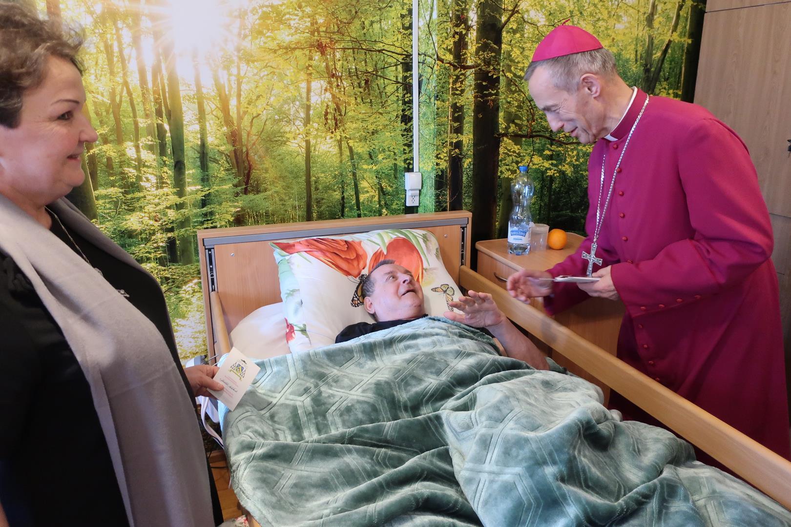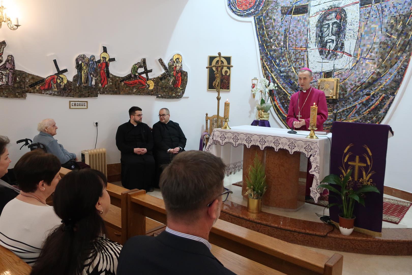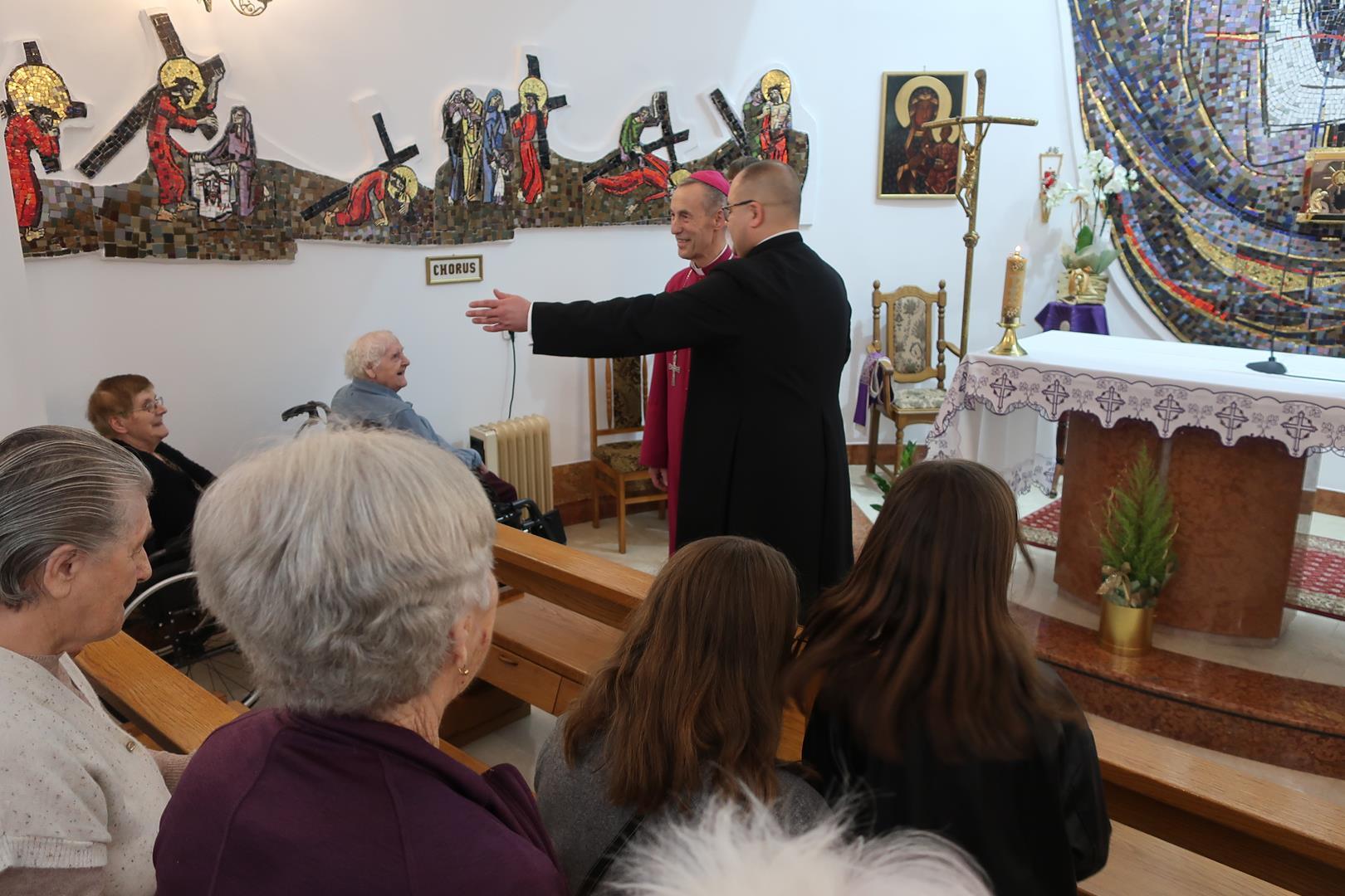 W dniu 28 lutego mieszkańcy Domu Radosnej Starości mieli zaszczyt gościć ks. biskupa Stanisława Salaterskiego. Wizyta była związana z wizytacją kanoniczną w naszej Parafii p.w. Najświętszej Maryi Panny Królowej Polski w Mędrzechowie. Ksiądz biskup rozpoczął wizytę wspólną modlitwą w kaplicy Domu Radosnej Starości, po czym odwiedził mieszkańców placówki oraz spotkał się z dyrekcją i pracownikami Domu.