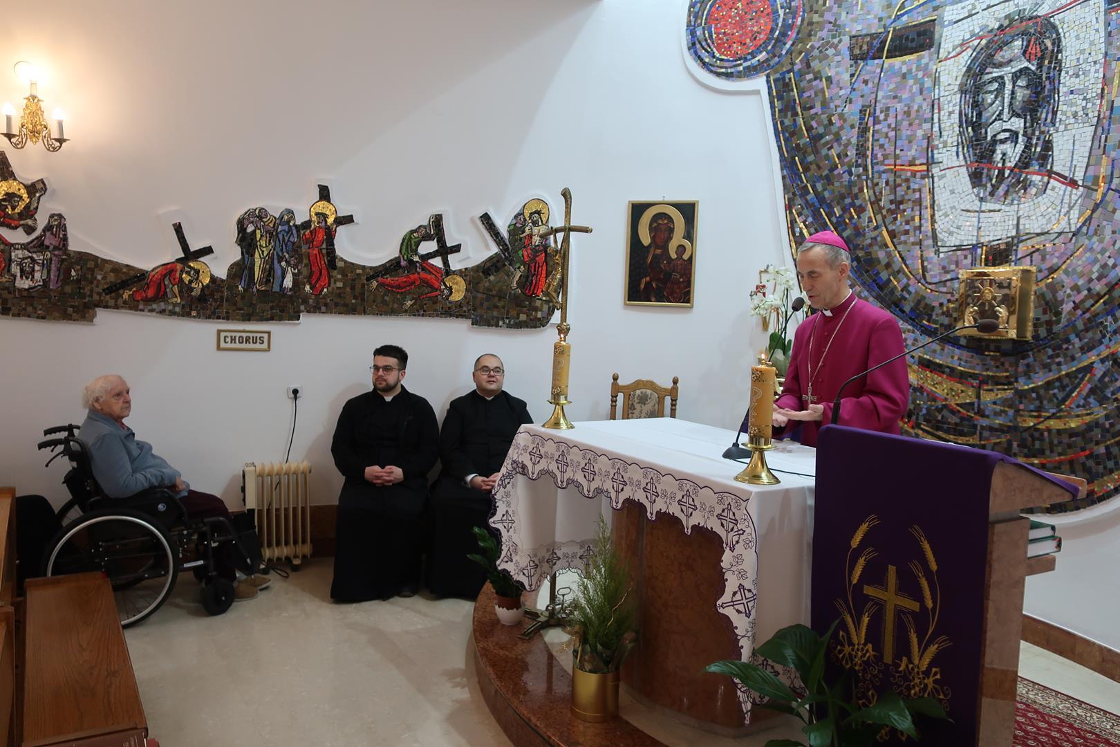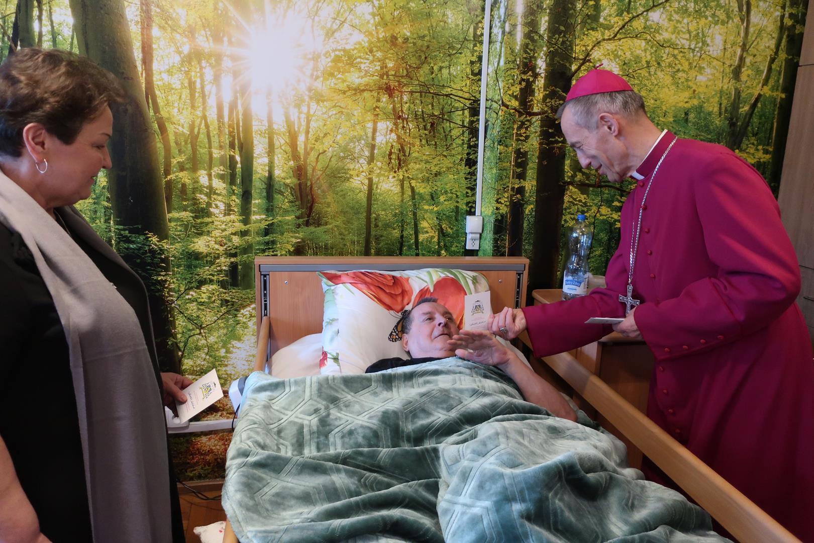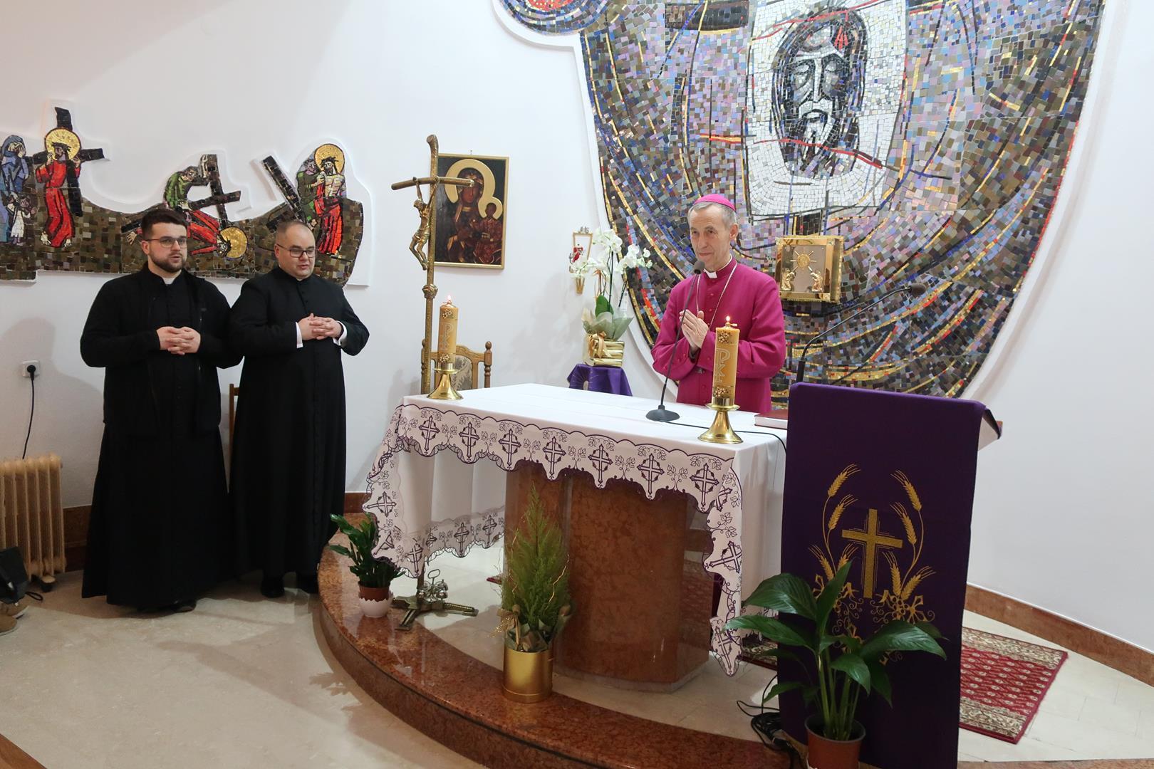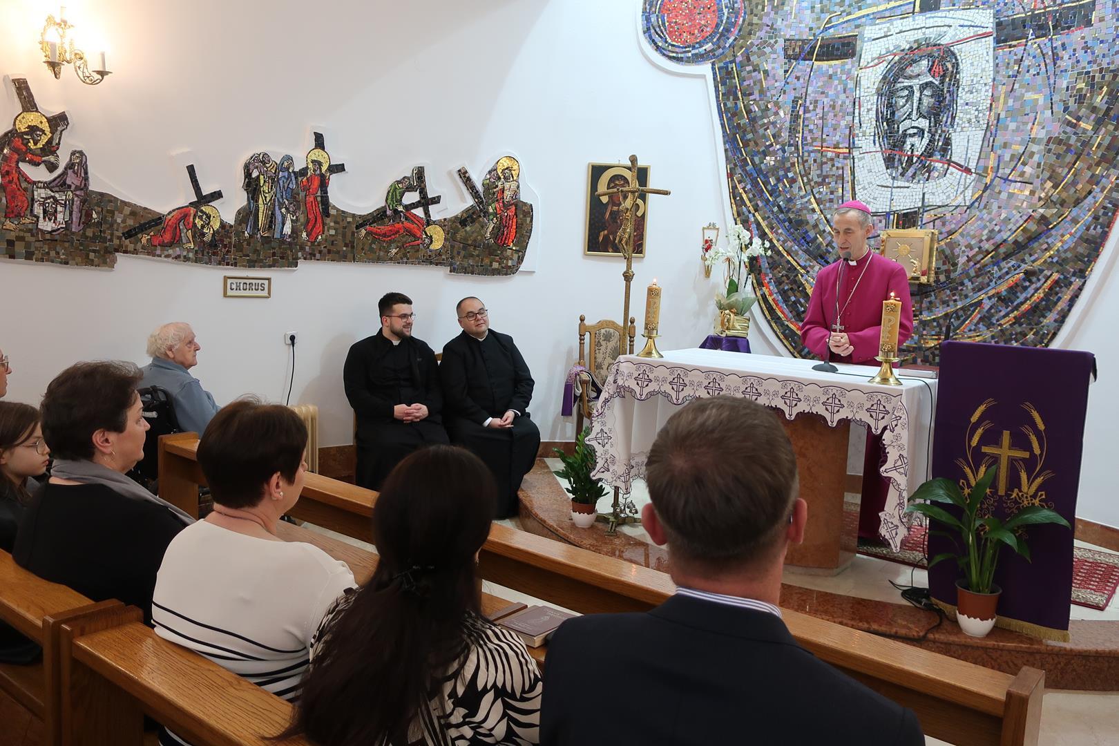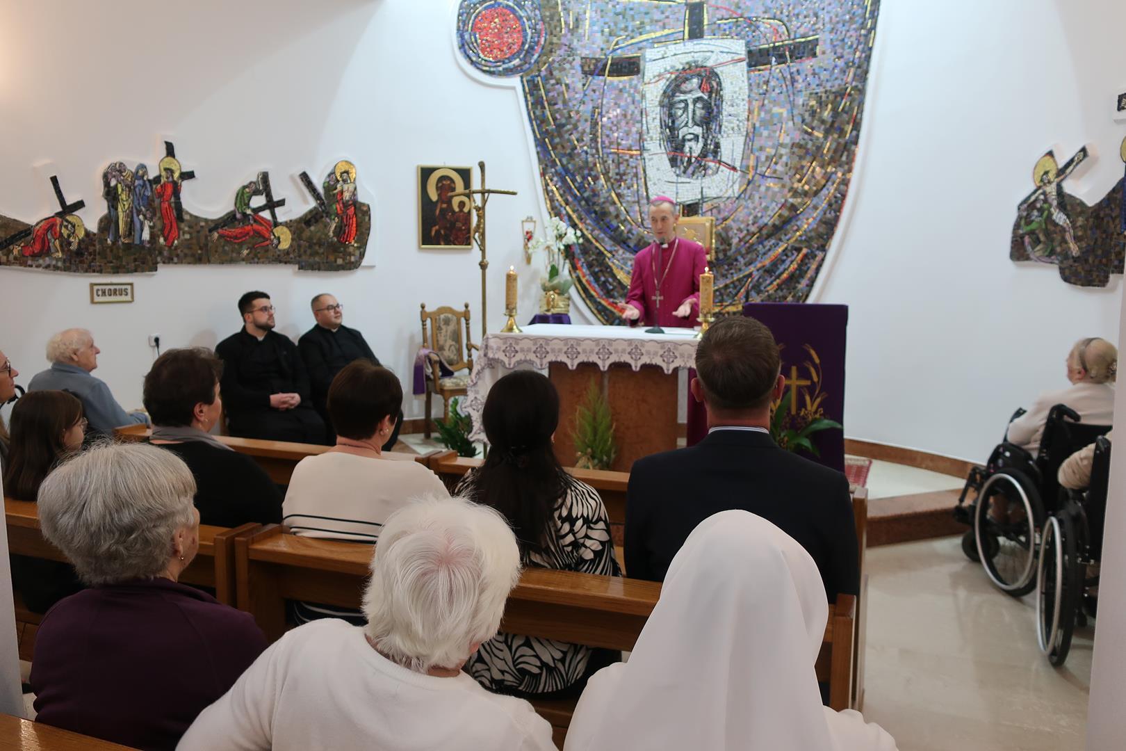 W dniu 28 lutego mieszkańcy Domu Radosnej Starości mieli zaszczyt gościć ks. biskupa Stanisława Salaterskiego. Wizyta była związana z wizytacją kanoniczną w naszej Parafii p.w. Najświętszej Maryi Panny Królowej Polski w Mędrzechowie. Ksiądz biskup rozpoczął wizytę wspólną modlitwą w kaplicy Domu Radosnej Starości, po czym odwiedził mieszkańców placówki oraz spotkał się z dyrekcją i pracownikami Domu.